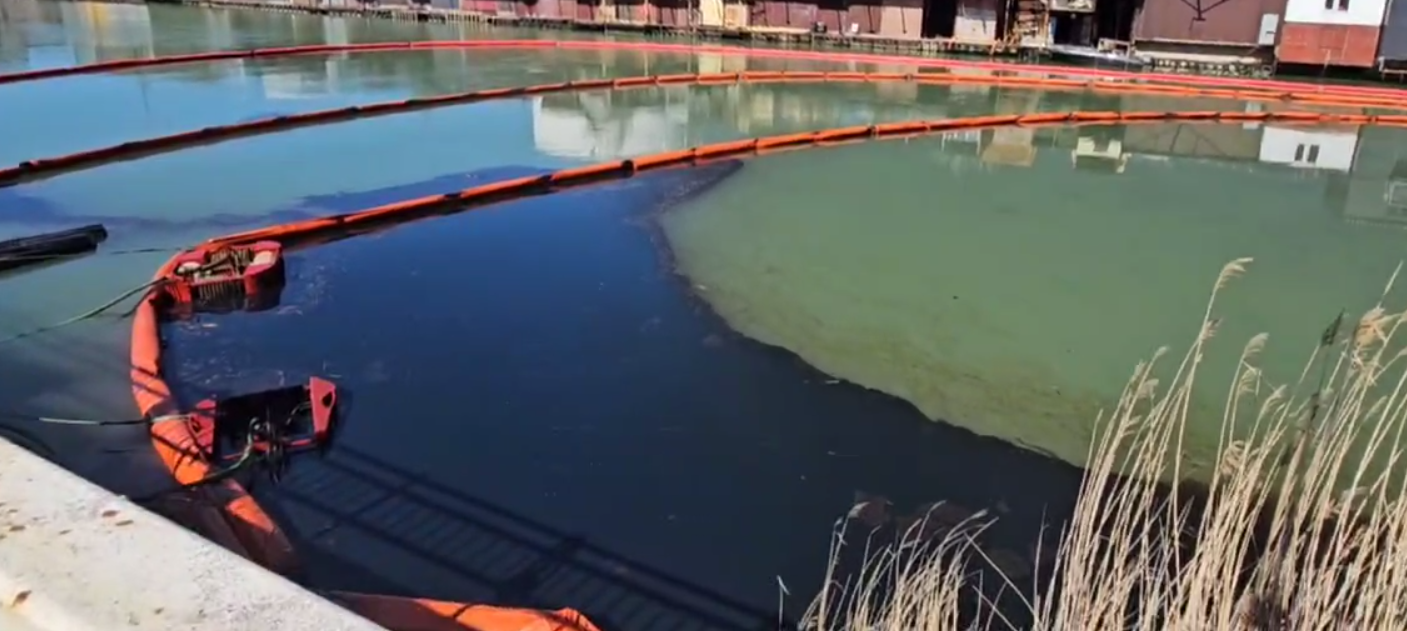 Жители города предполагают, что в акватории произошел разлив нефтепродуктов.