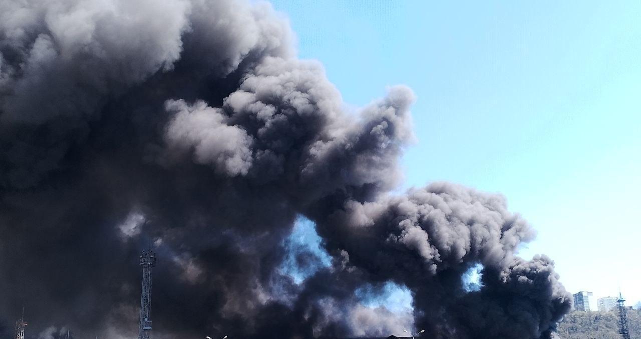 Над Туапсе поднимаются густые столбы дыма.